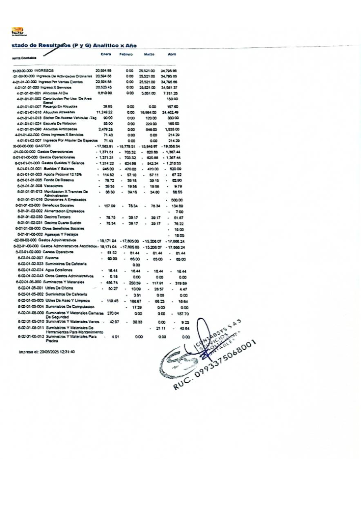 Analítico por año Abril 2025